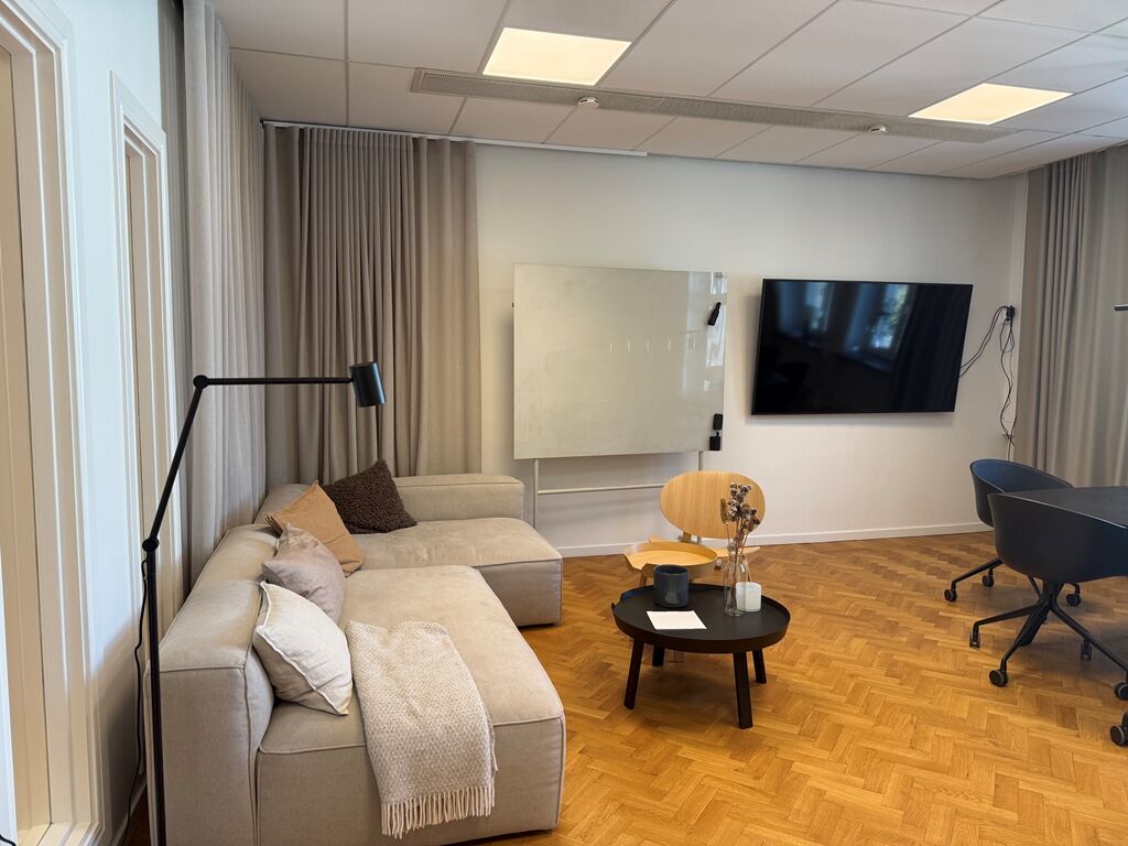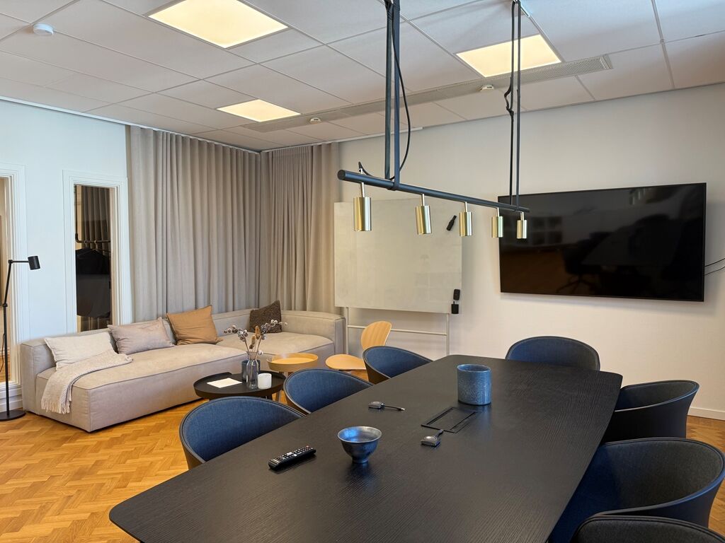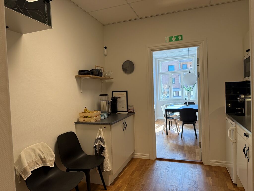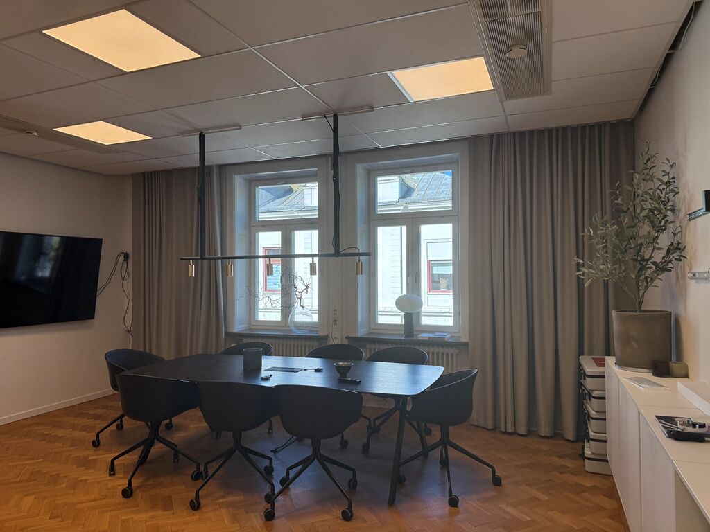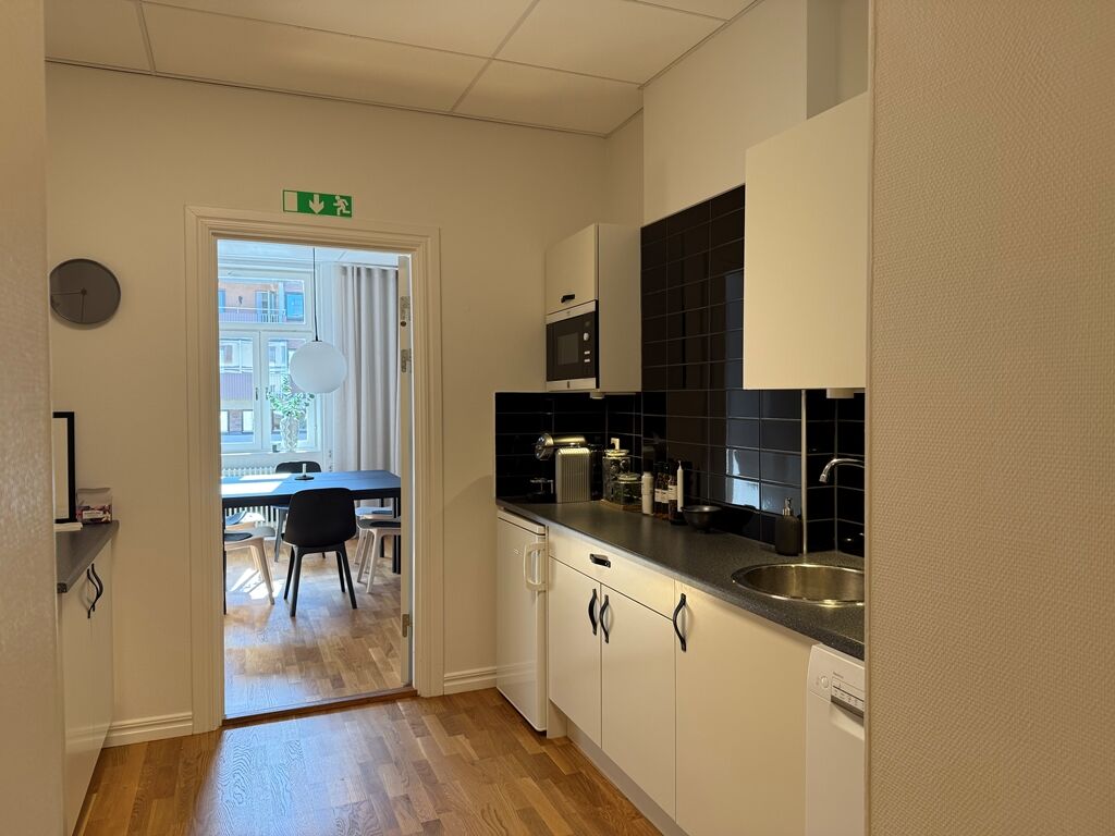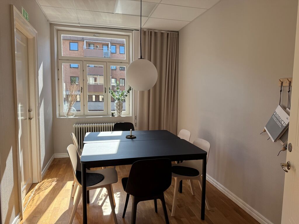Lokalen är på 128 kvm och erbjuder en välplanerad yta som passar utmärkt för företag som söker en representativ och trivsam arbetsmiljö mitt i stan. Lokalen renoverades 2022 med nyslipade golv och vitmålade väggar, vilket ger ett fräscht och modernt intryck. Planlösningen består av en rymlig hall, ett stort konferensrum med gott om plats för möten, ett kök samt ett separat lunchrum. Här finns även två kontorsrum med plats för två till tre arbetsplatser i vardera, varav det ena har tillgång till en trevlig balkong. Lokalen är dessutom utrustad med toalett med dusch samt ett praktiskt städförråd. Det här är en lokal som kombinerar funktionalitet med charm perfekt för verksamheter som vill etablera sig i ett attraktivt och lättillgängligt läge.