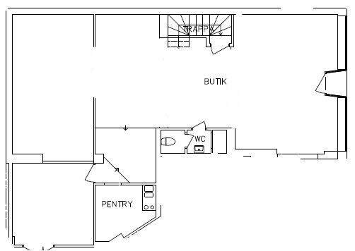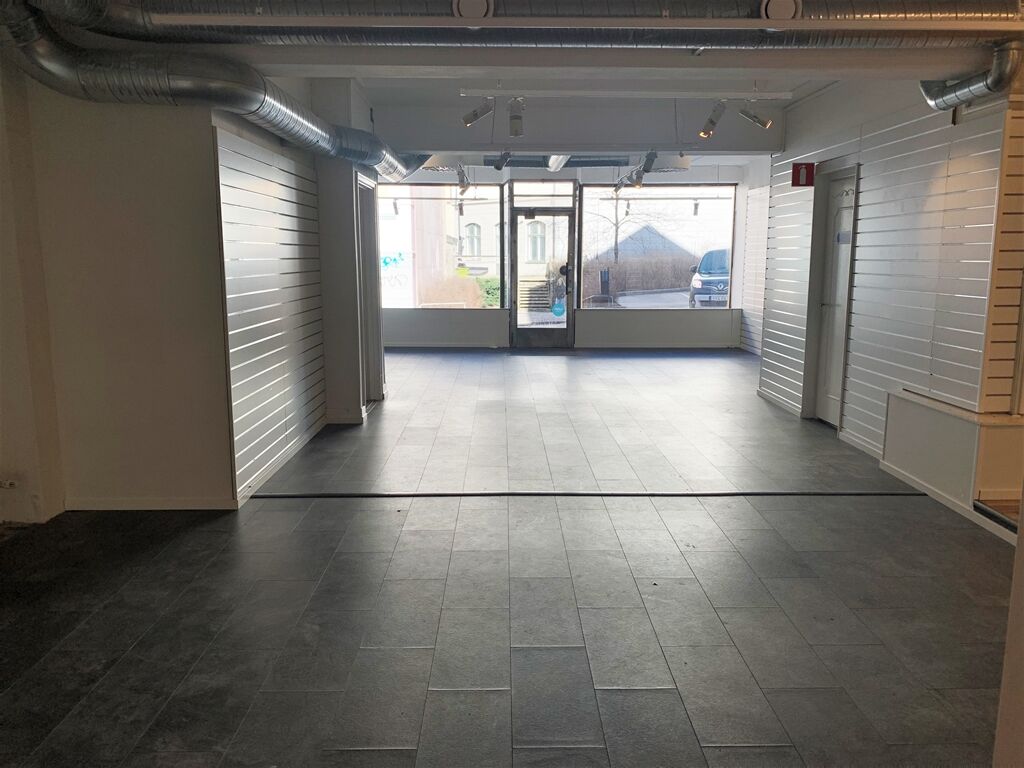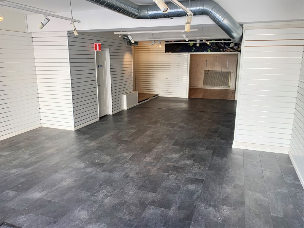 Öppen butikslokal i entréplan med tillhörande lager alternativt paus/personalrum i källarplan. Pentry och toalett finns i lokalen.